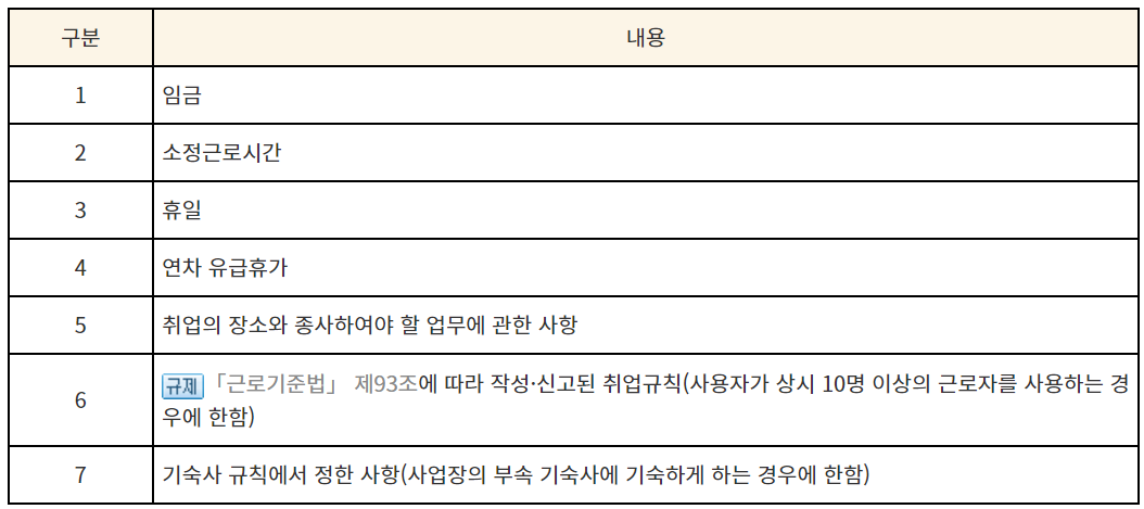 7. 기숙사 규칙에서 정한 사항(사업장의 부속 기숙사에 기숙하게 하는 경우에 한함)
