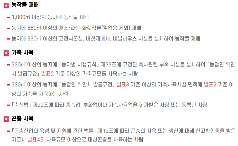 농업경영체를 등록하기 위한 조건들은 어떠한지 알아보겠습니다.
