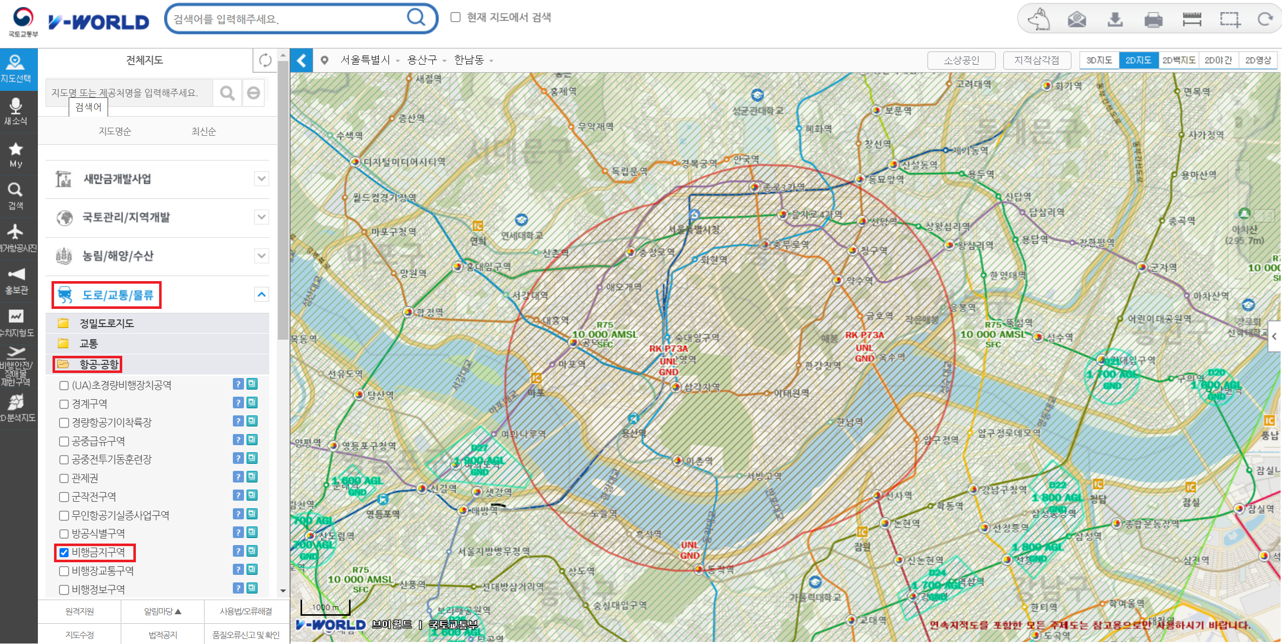 2. 비행금지구역 : 휴전선 인근, 서울도심 상공 일부, 원전 주변