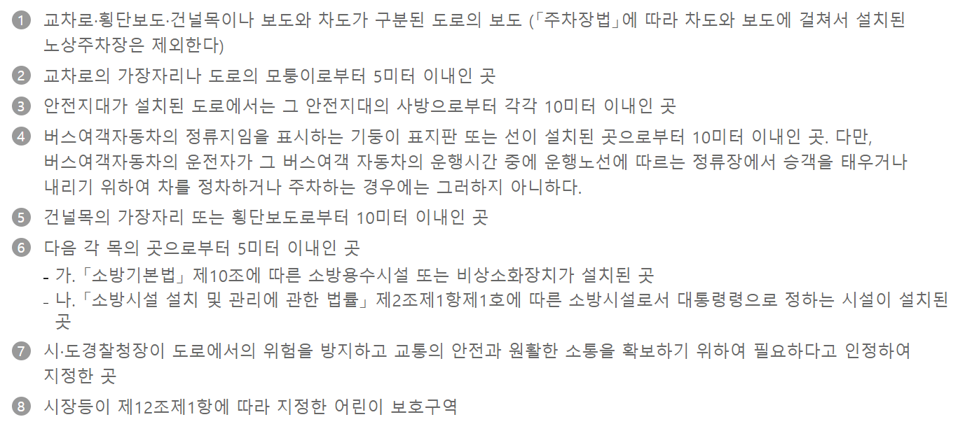 도로교통법 제33조에 따른 주차금지 장소는 아래와 같습니다.