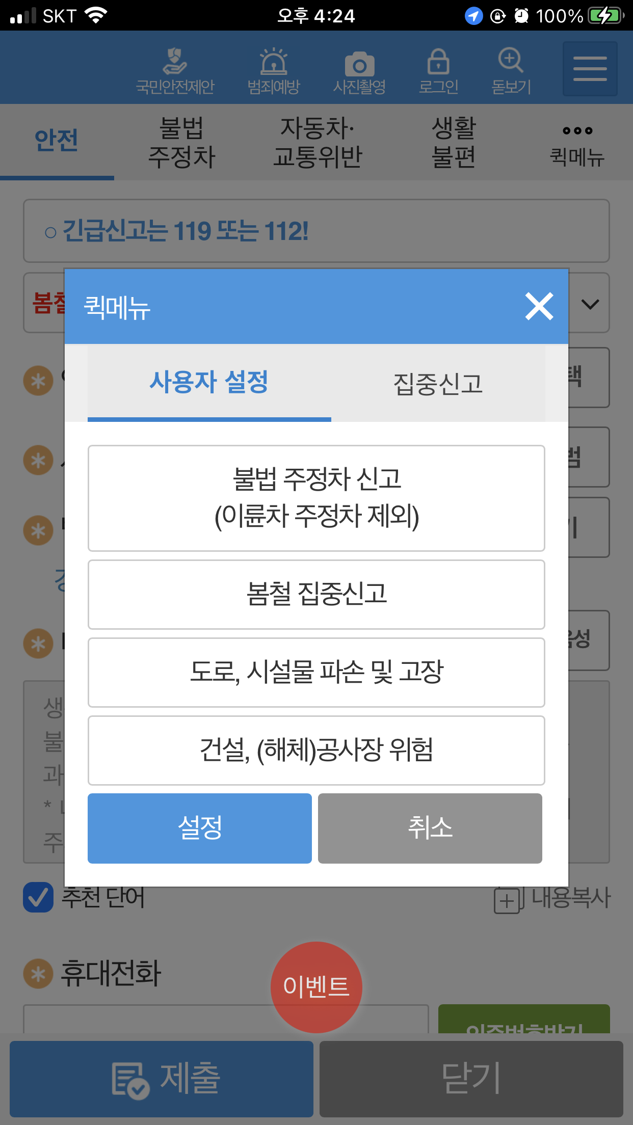 안전신문고 앱을 설치하셔서 신고할 수 있습니다.