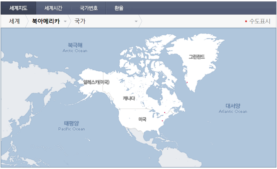 북아메리카의 미국을 확인하고 싶다면