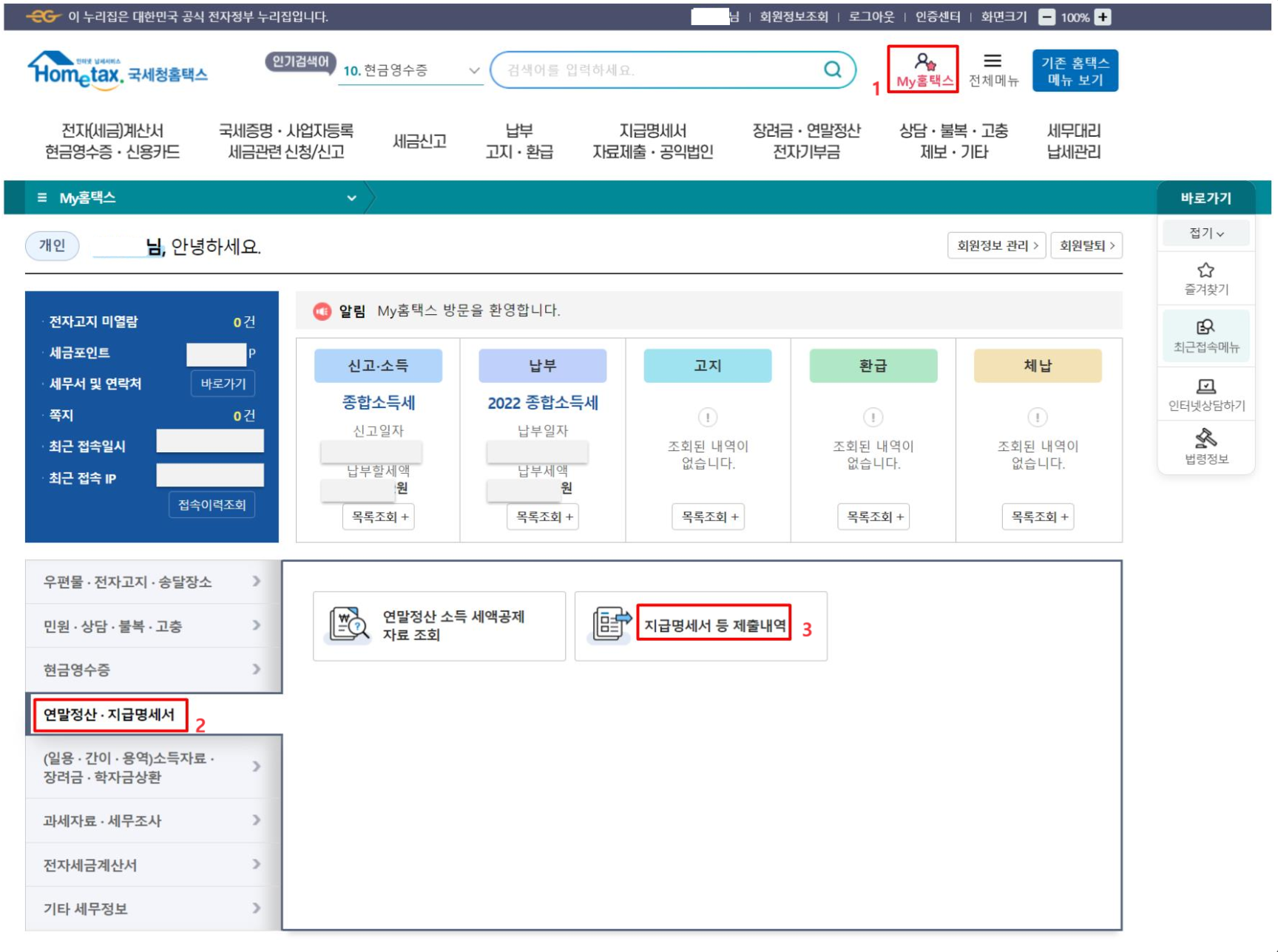 1. My 홈택스 클릭