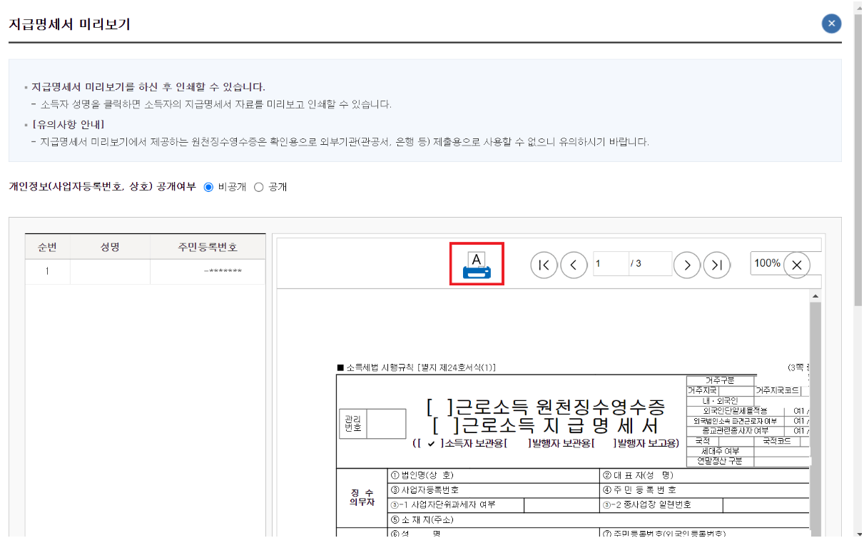 원천징수영수증 발급