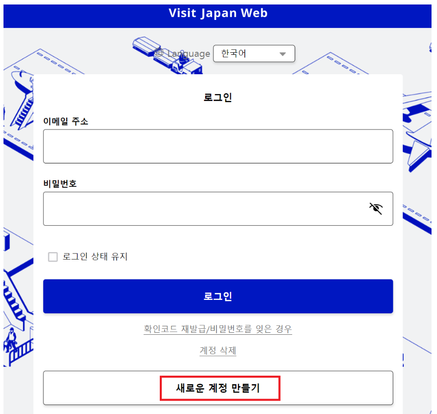 (3) 로그인하여 본인과 동반가족 정보를 등록합니다. 이때 여권, 비행기편명, 일본 숙소의 정보가 필요합니다.