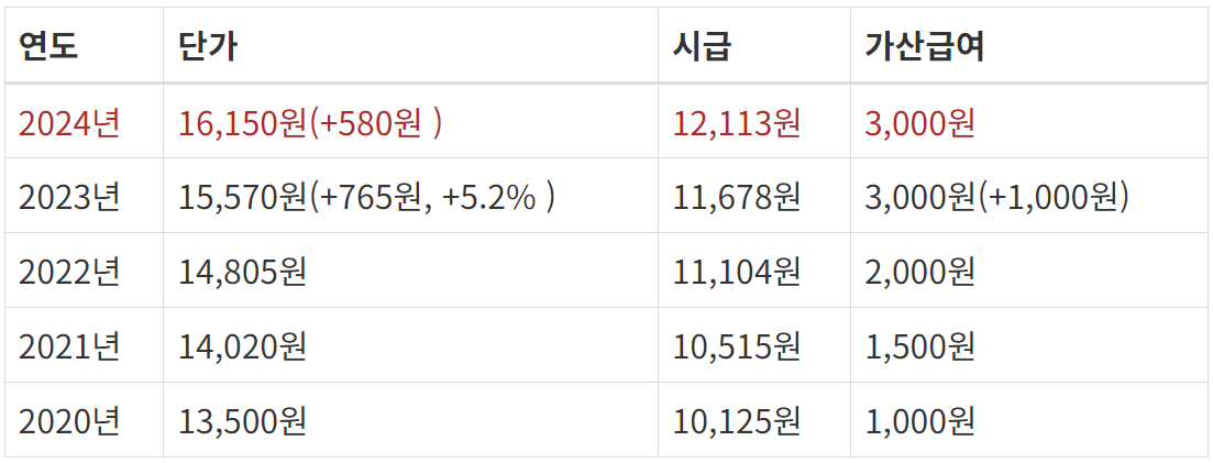 2024년 장애인 활동지원사는 시급으로 시간당 16,150원이며 심야시간과 공휴일에는 50% 추가 지급됩니다. 장애인 활동지원사는 활동지원기관 소속이므로 기관에 25%를 차감한 후에 급여를 지급받아 2024년 최저 시급은 25% 제외한 12,113원입니다. 심야와 공휴일은 가산급여가 4,500원으로 지급됩니다.