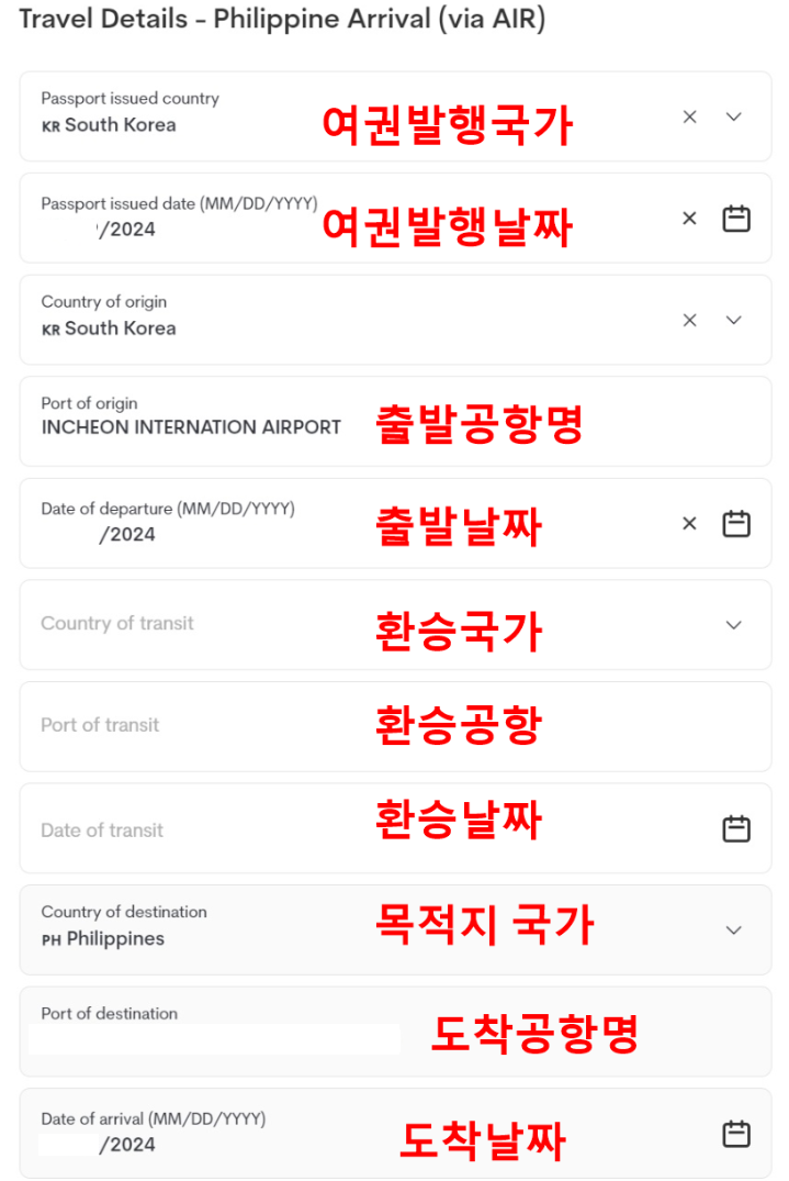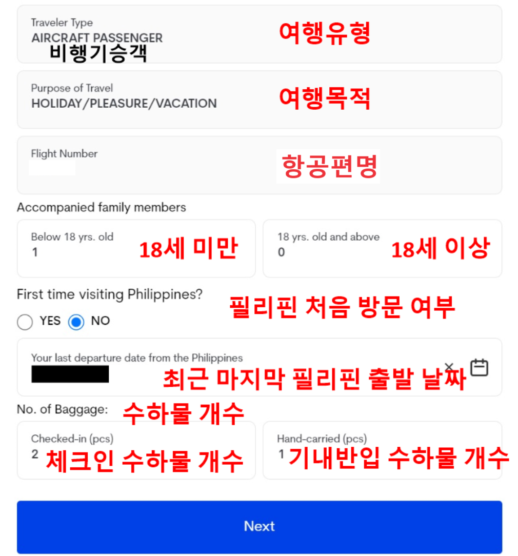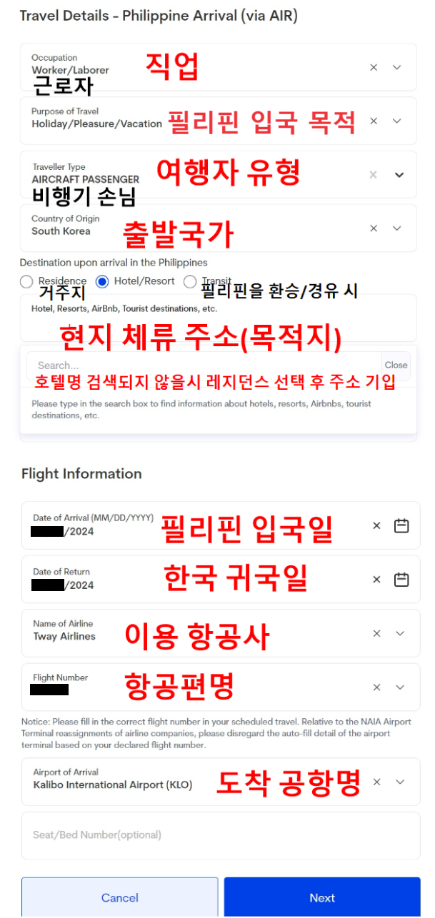 Flight Number는 항공편명으로 필리핀 도착 후 입국 심사를 받는 공항을 기준으로 항공편명을 기재하면 됩니다.