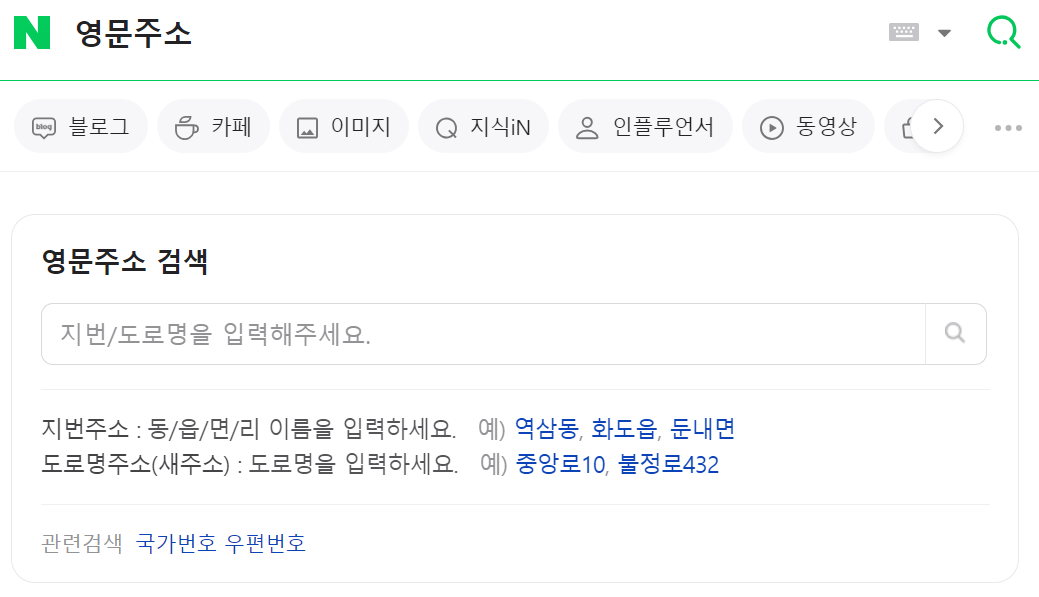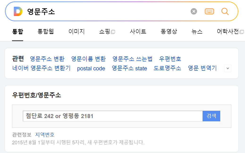 거주지 영문 주소는 다음, 네이버에서 '영문주소'를 검색하면 나옵니다.