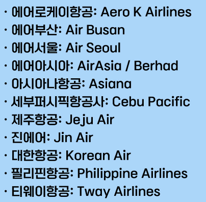 이용 항공사의 명칭은 아래를 참고하셔서 작성하면 됩니다.