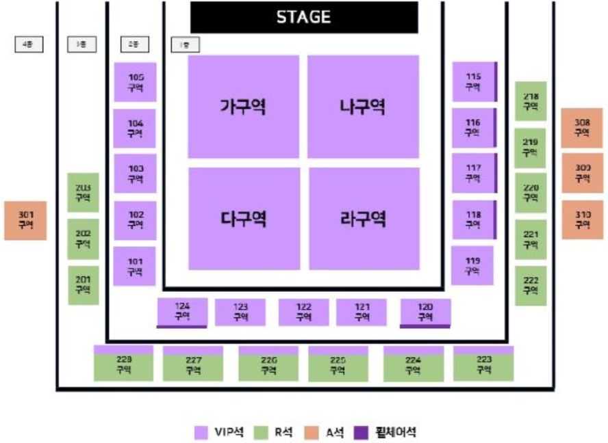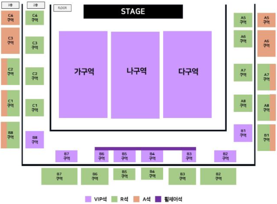 - Floor석은 단차가 없는 평지 좌석이며, 별도로 의자가 설치됩니다.