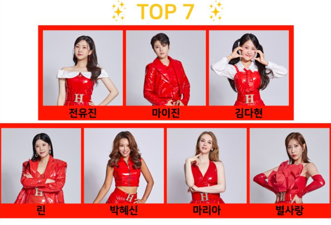 현역가왕의 TOP 7은 전유진, 마이진, 김다현, 린, 박혜신, 마리아, 별사랑입니다.