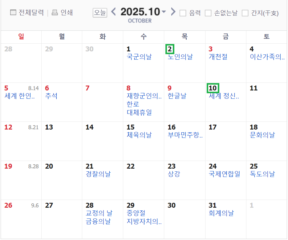 벌써 세달정도 뒤면 2025년입니다. 회사원이나 대표라면, 연휴가 언제인지 확인하기 위해서 달력을 습관처럼 보게 됩니다. 오늘은 2025년 내년 달력은 과연 황금연휴가 있는지, 연휴가 어떤지 짚고 가는 시간을 가져보겠습니다.