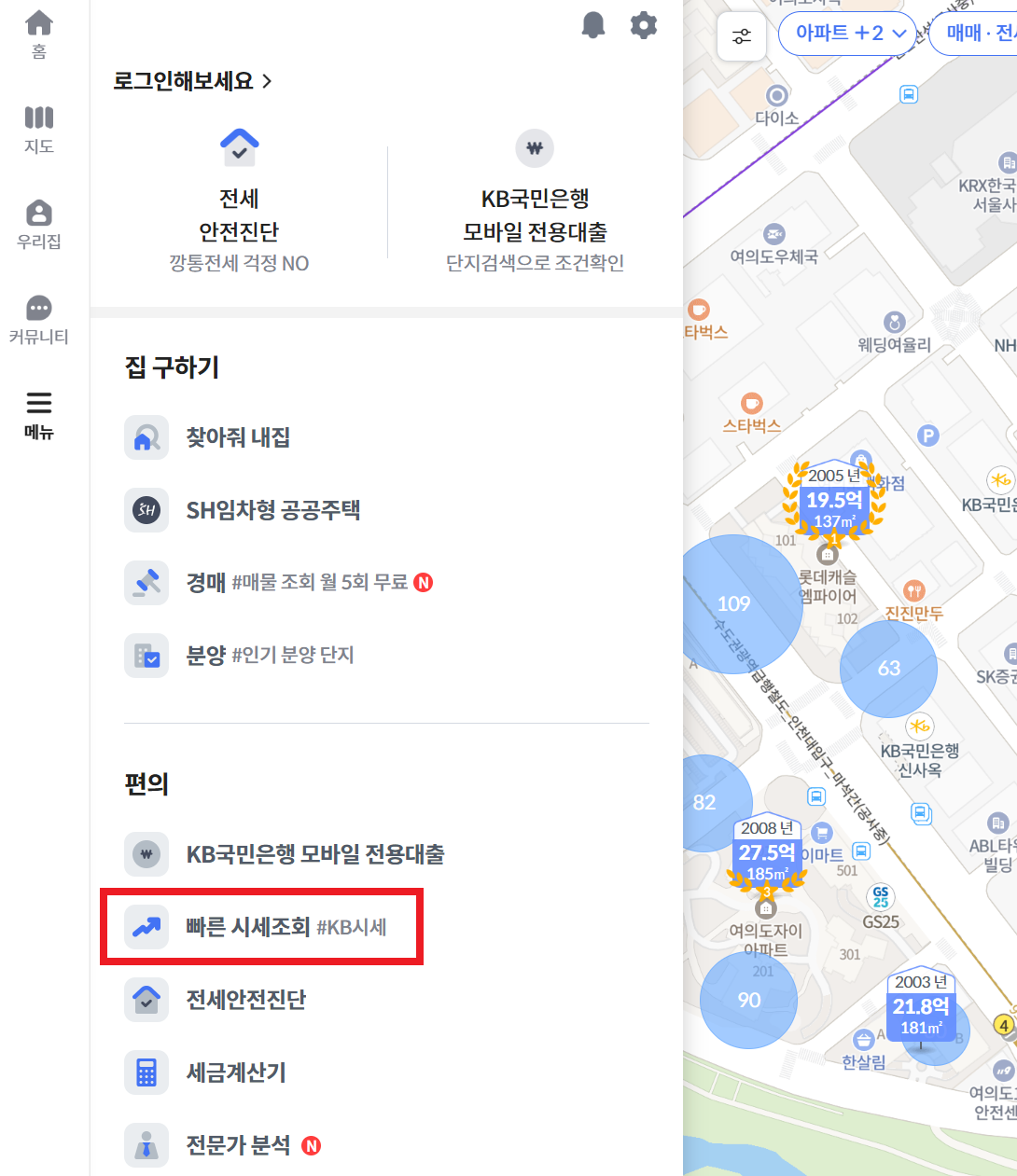 KB부동산 시세 조회 바로가기